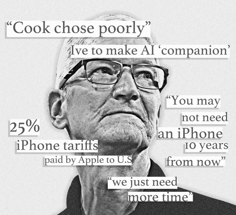 库克还要应对两位美国联邦法官、欧洲及全球监管机构、州和联邦立法者,甚至还包括一位 iPhone 缔造者,更别提在人工智能领域跑在苹果前面的众多竞争对手了。 特朗普对库克不满 每一项挑战都对苹果的高利润率造成了威胁。