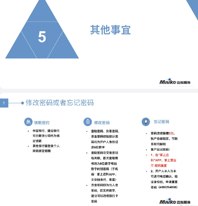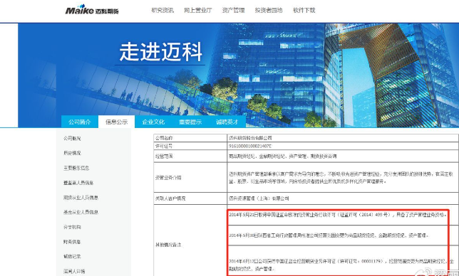 选择合法持牌的期货公司 在中国 合法的期货经营机构必定让用户放心,迈科期货作为西北地区的老牌期货公司,成立于1993 年12月,目前已有33年的时间,在150家期货公司里属于11名,也是上市公司,在中国证监会可查询。全国有13家分支机构(大连、青岛、陕西、广东、河南,北京、上海、深圳、成都、杭州、厦门、惠州),注册资金3.28亿元,在新三板上市,证券代码870593,是国内第一批经中国证监会核发期货经纪业务许可证的期货公司,西安+上海双总部运营,在西北一带属于民营企业第1强,位列中国500强第168位,在证监会,期货业协会,国家企业信用信息公式系统(工商局),各大签约银行都能查到。业务范围:商品期货经纪、金融期货经纪、资产管理业务、期货投资咨询。迈科期货软件:电脑端-迈科期货WH6